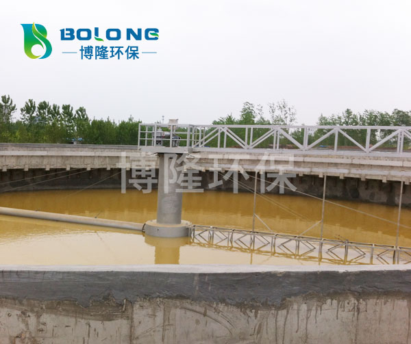 待處理的水從中間筒進(jìn)水管進(jìn)入,通過穩(wěn)流筒穩(wěn)流進(jìn)入沉淀池然后向四周擴(kuò)散沉淀,清水由池邊溢流堰流出,其中沉淀物由刮泥板集中到吸泥口,經(jīng)壓縮空氣擾動(dòng)混合和增加氧,增加了污泥活性,根據(jù)連通管原理,利用水位差將池底污泥吸入排泥槽,通過虹吸管進(jìn)入中間筒排泥管排出。同時(shí)池中浮渣由刮板收集經(jīng)排渣斗排出池外。